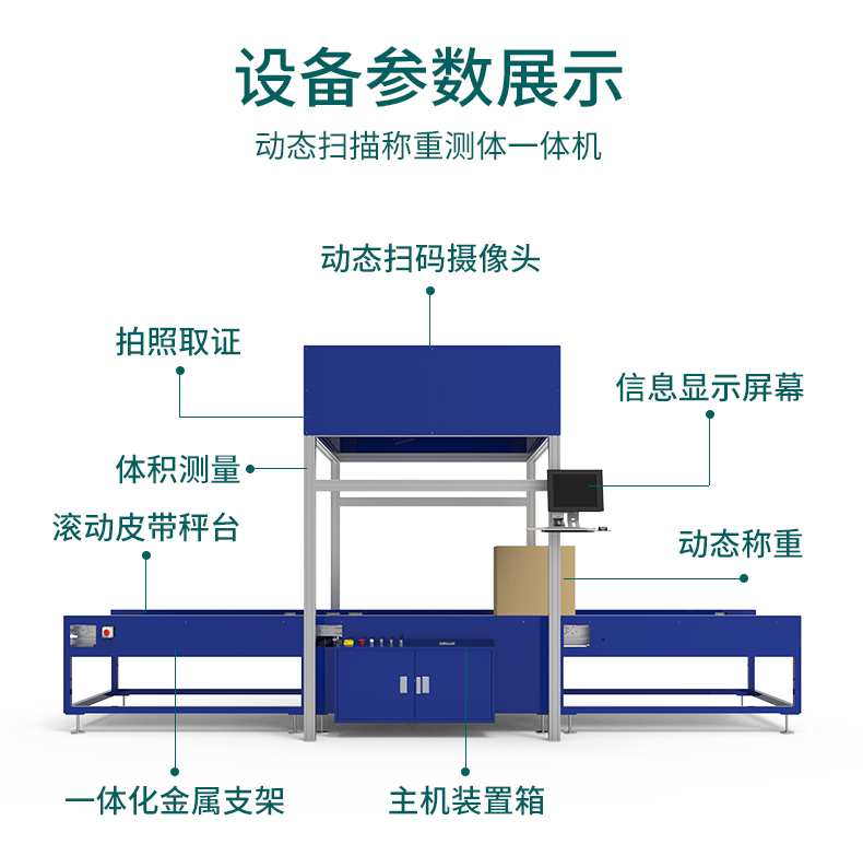 稱重掃碼測體一體機還可以用自動條碼和二維碼識別,光學字符識別,視頻補碼系統,包裹追蹤,自動和靜態體積測量,動態重量檢測,自動讀碼,體積測量和稱重三合一DWS系統,完全符合工業設備的工作環境。