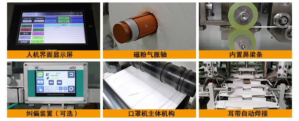 1. 全自動一拖一kf94魚型口罩機 GSKZJ-103-A含四個張力;標配) 1臺 2. 4個糾偏機構(選配)1套 3. 廢料收卷器(選配)1臺 4. 打片機護罩+耳帶機護罩(選配)1套 5. 泡棉貼附機構(選配)1套 |